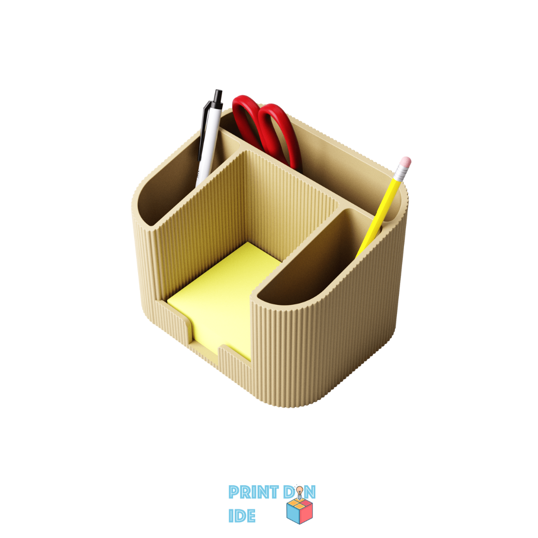 Den rillede overflade giver et elegant look og godt greb, og den afrundede form passer perfekt på både hjemmearbejdspladsen og kontoret. Uanset om du arbejder kreativt eller struktureret, er denne 3D-printede løsning både funktionel og dekorativ.