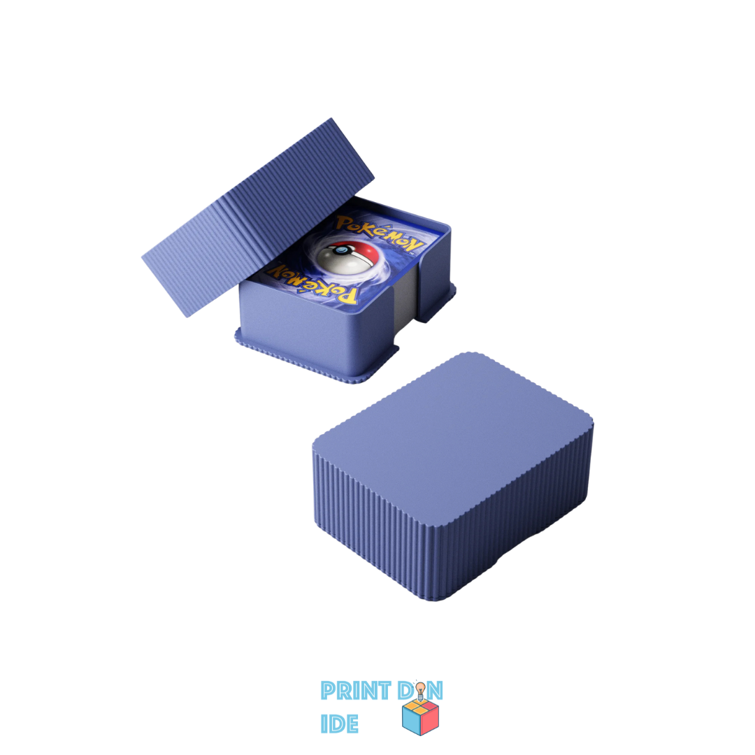 Denne 3D-printede kortæske er designet til dig, der elsker dine Pokémon-kort og gerne vil passe godt på dem. Den elegante æske har et rillet, moderne look og en smart udskæring, som gør det nemt at tage kortene ud uden at beskadige dem. Låget sidder sikkert og glider let af og på, hvilket gør den perfekt til både hjemmeopbevaring og til at tage med på farten.