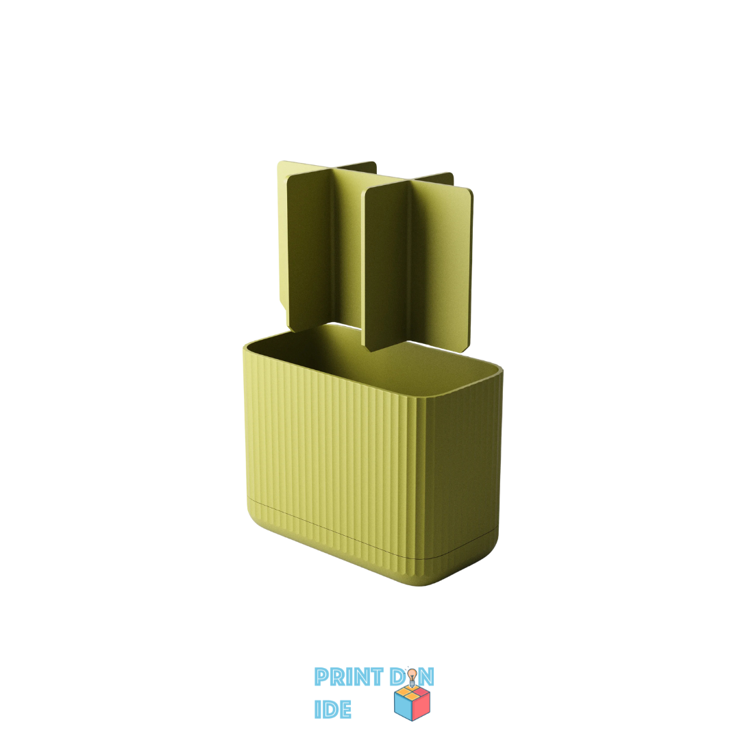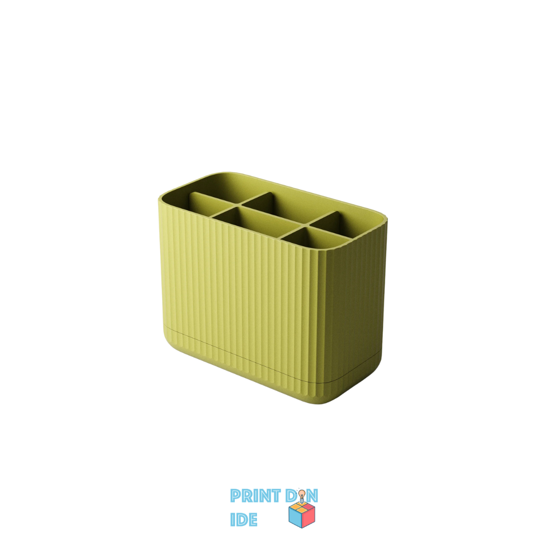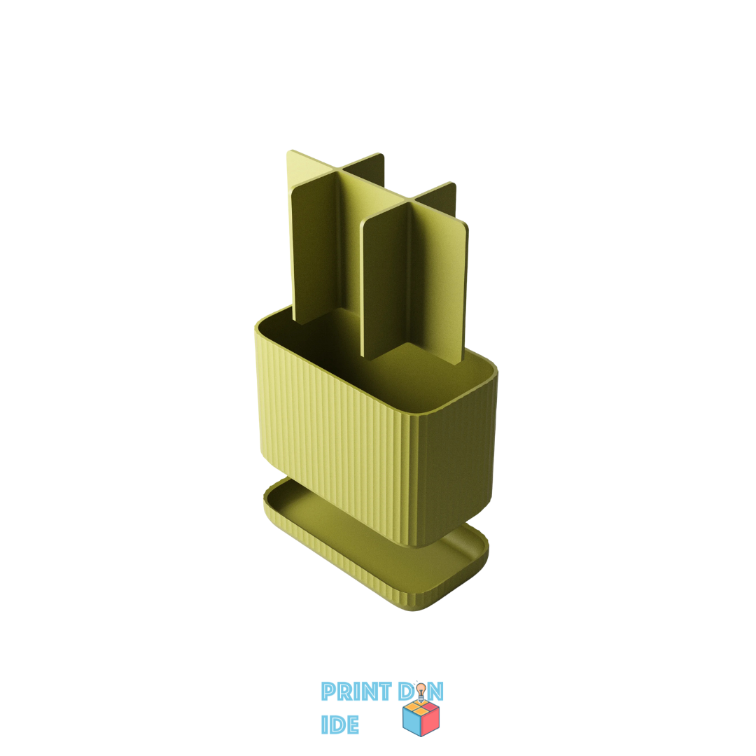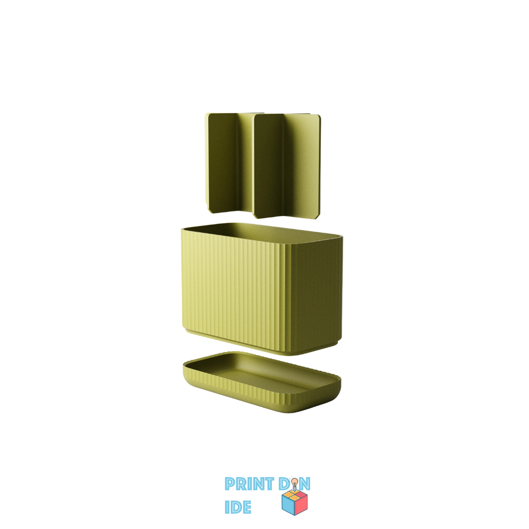 Sig farvel til rod og våde overflader – denne 3D-printede tandbørsteholder er skabt til både funktion og æstetik. Designet består af en todelt konstruktion: en hovedbeholder med syv separate rum og en drypbakke i bunden, der forhindrer overskydende vand i at samle sig direkte på bordet.