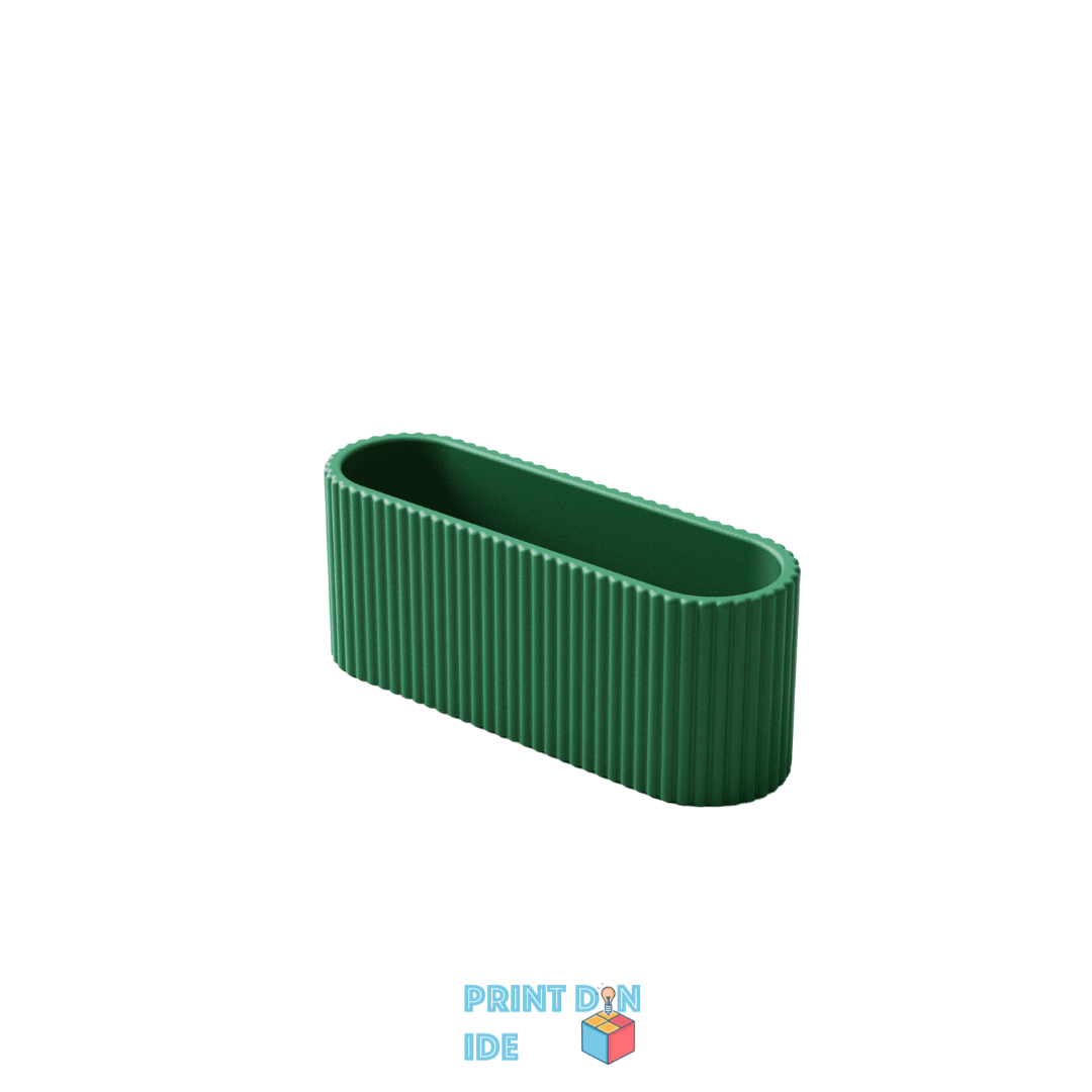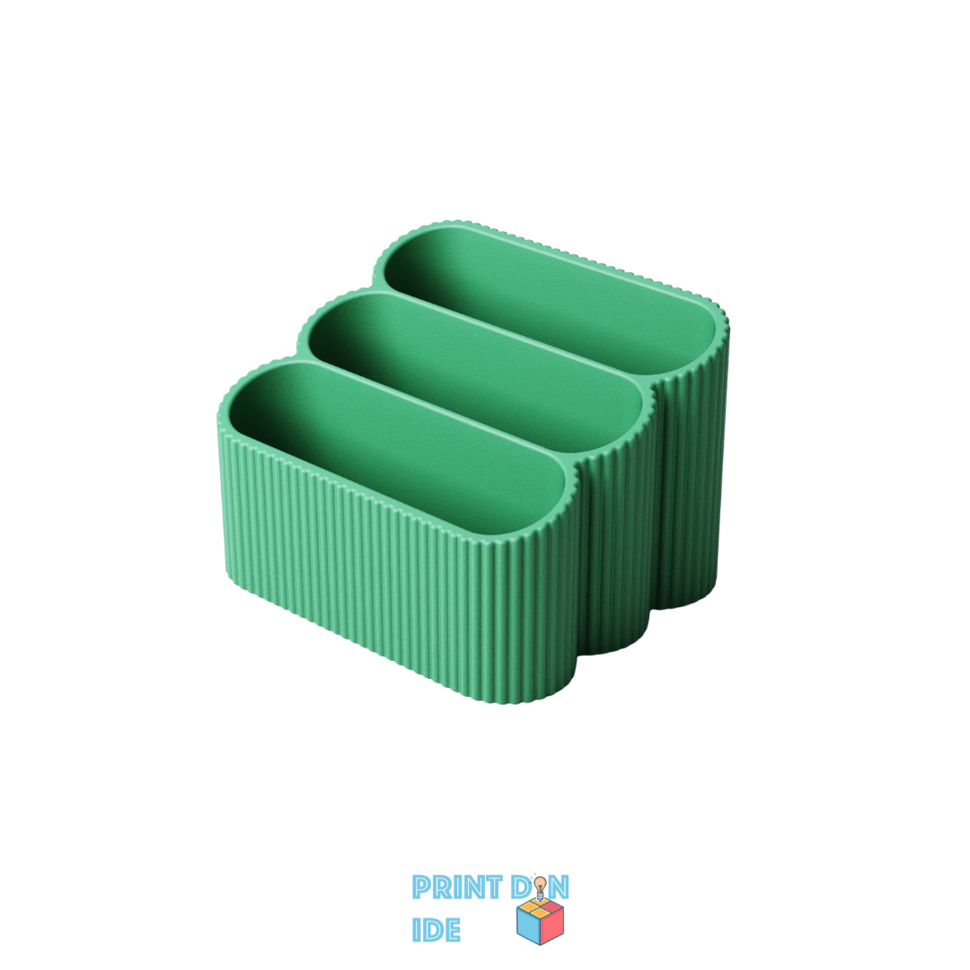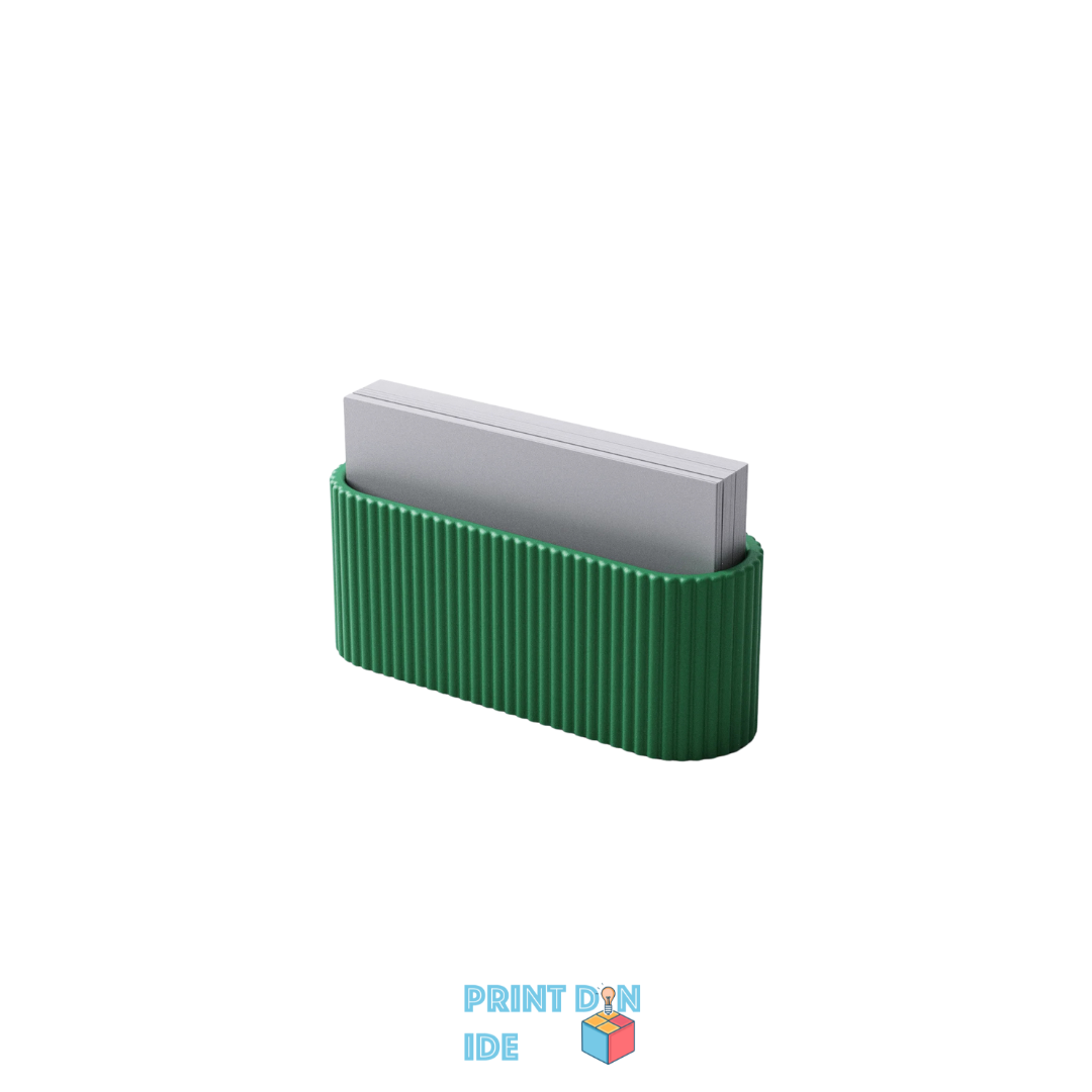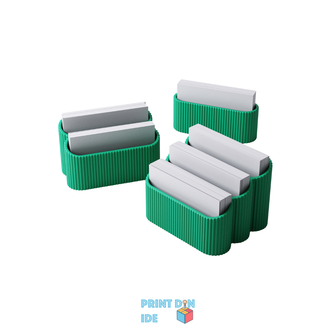 Fremvis dine visitkort med stil i denne elegante og funktionelle 3D-printede holder. Med sit moderne rillet design og afrundede former passer den perfekt på skrivebordet, i receptionen eller til messer og events. Holderen fås i flere størrelser, så du kan vælge præcis det layout, der matcher dit behov – uanset om du har få eller mange kort.